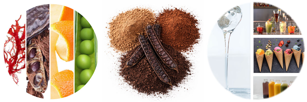 - Texturants conventionnels et/ou biologiques : caroube, guar, pectine, fibres, xanthane, carraghénanes, agar-agar, alginates et poudres d’algues.
